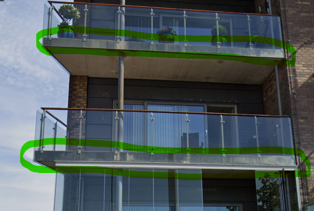 Is it possible to clean these sections (green color) in a good way? Between the glass and the balcony, hopefully without entering the balcony.