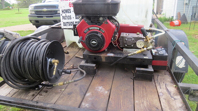 Now I do have a 16hp Van Guard 4gpm 3,500psi 200 galllon tank 220’ of hose… 6month old General TS2021 pump only burn non ethanol gas. 10 trailer
