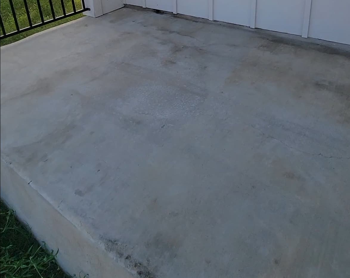 Can yall confirm what I’m seeing from the surface cleaner swirls and small tan areas? Would I still be considered liable given the age of the concrete patio? Or is it the builder’s fault?