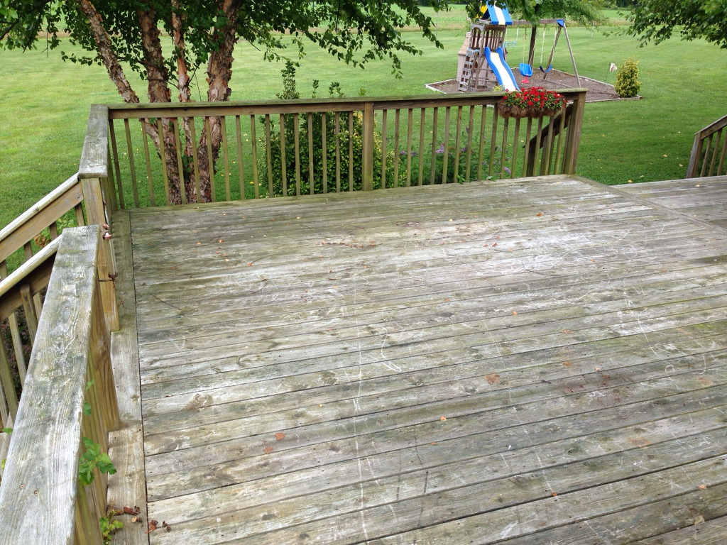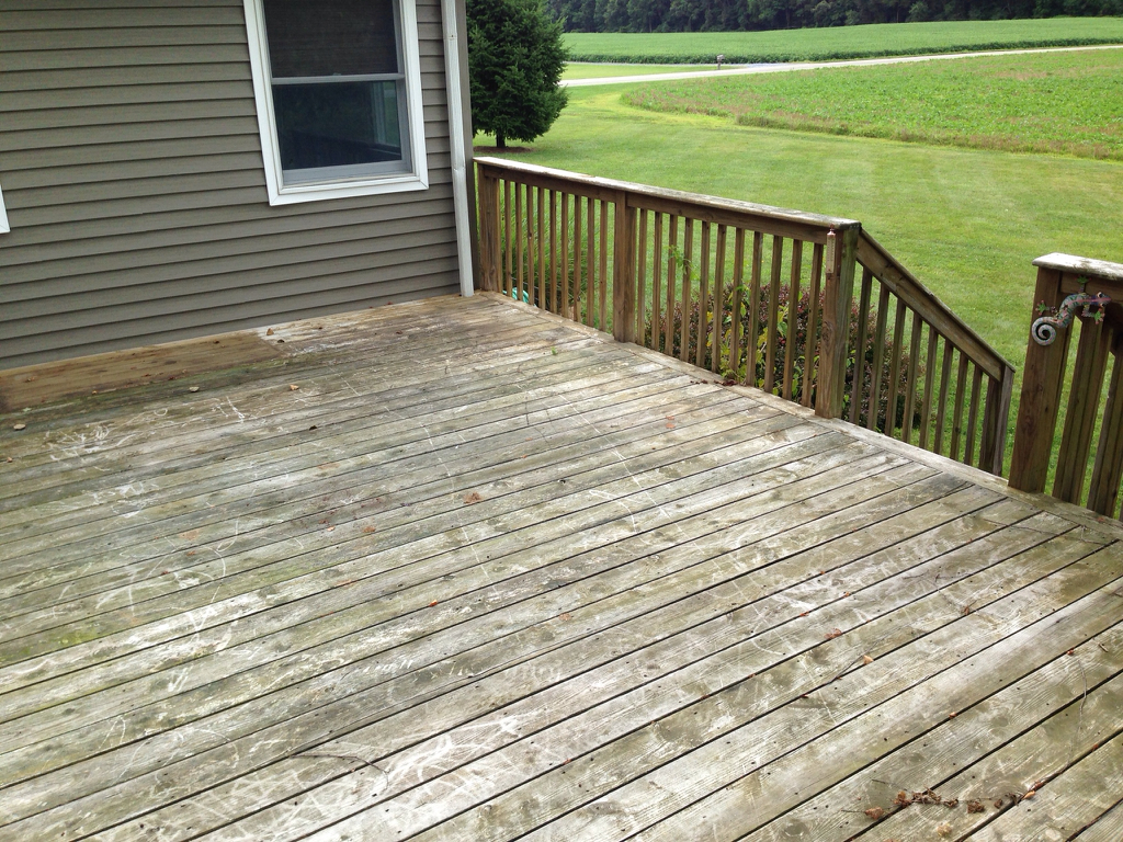 The deck I am going to be washing is pretty old. And from what I can tell it has either never been stained or if it has, it must’ve been a long time ago. It’s mostly green from mold and gray from the sun exposure. The customer doesn’t want it stained afterwards either. Just cleaned.