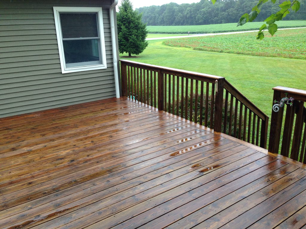 Finished 1/2 of my first deck. The heavy rain stopped me from finishing it all up. Gonna have to return tomorrow.