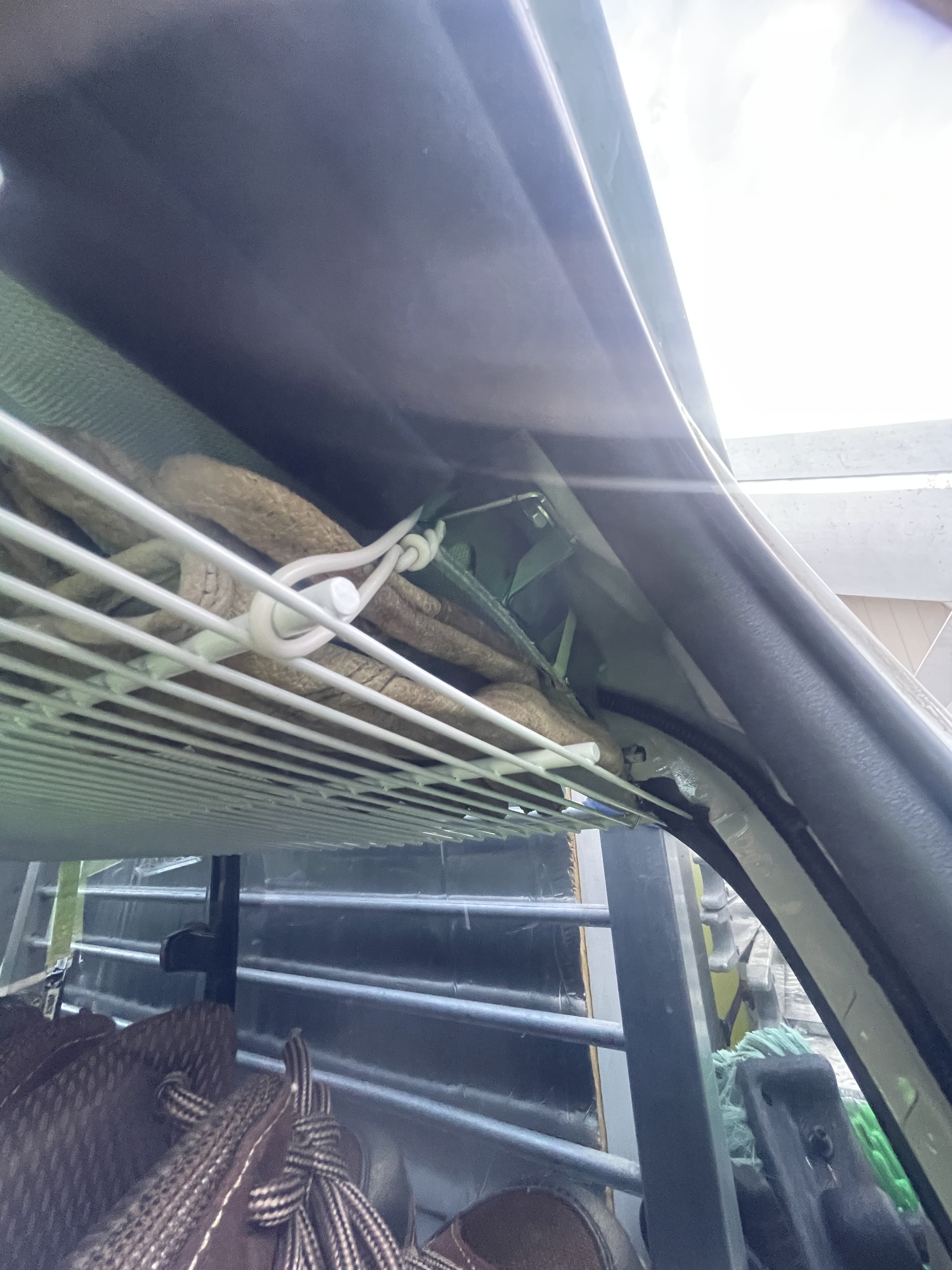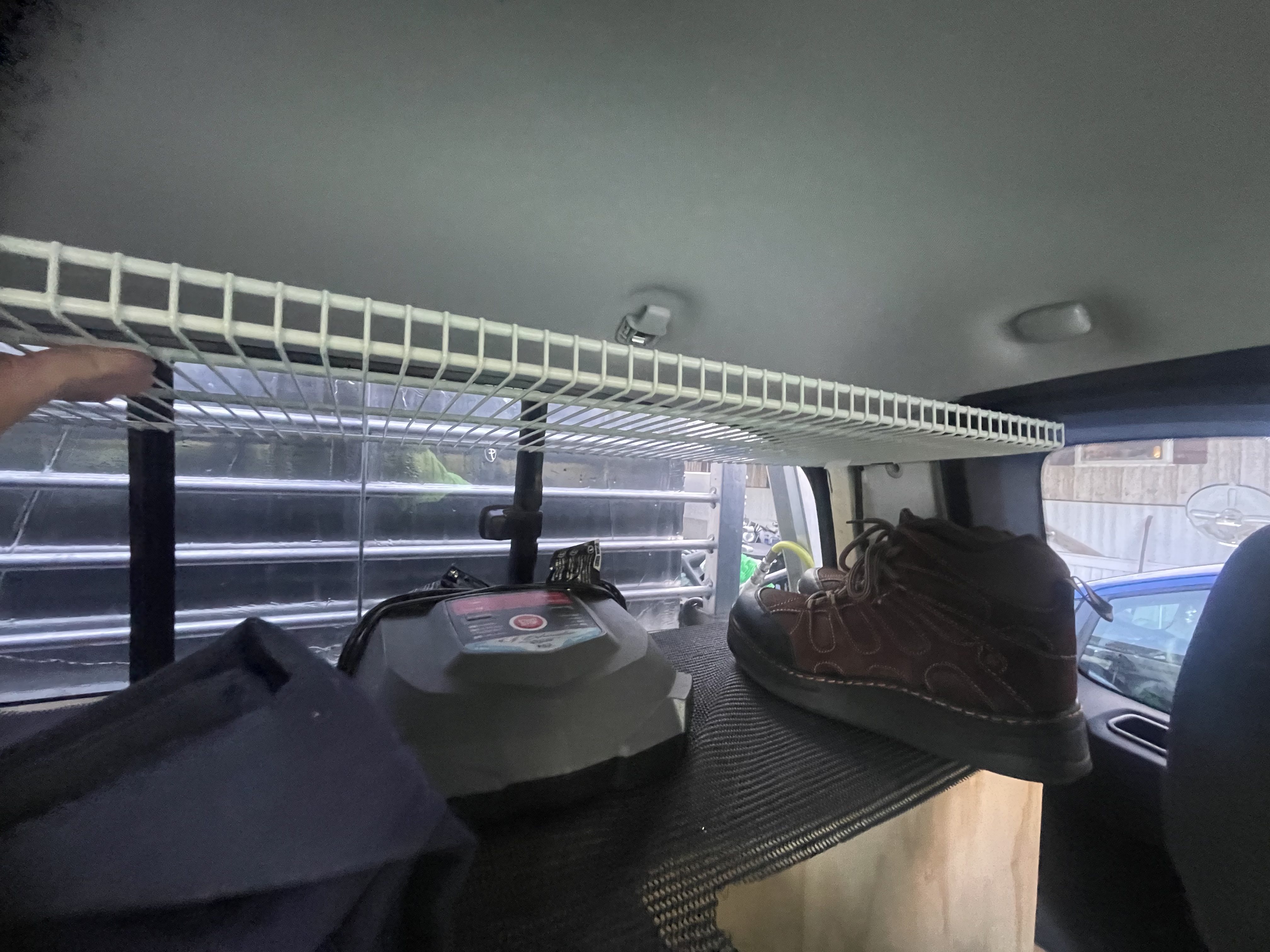 Brainstorming how to install this new shelf. Thinking I’ll try and use those seatbelt bolt holes somehow.
