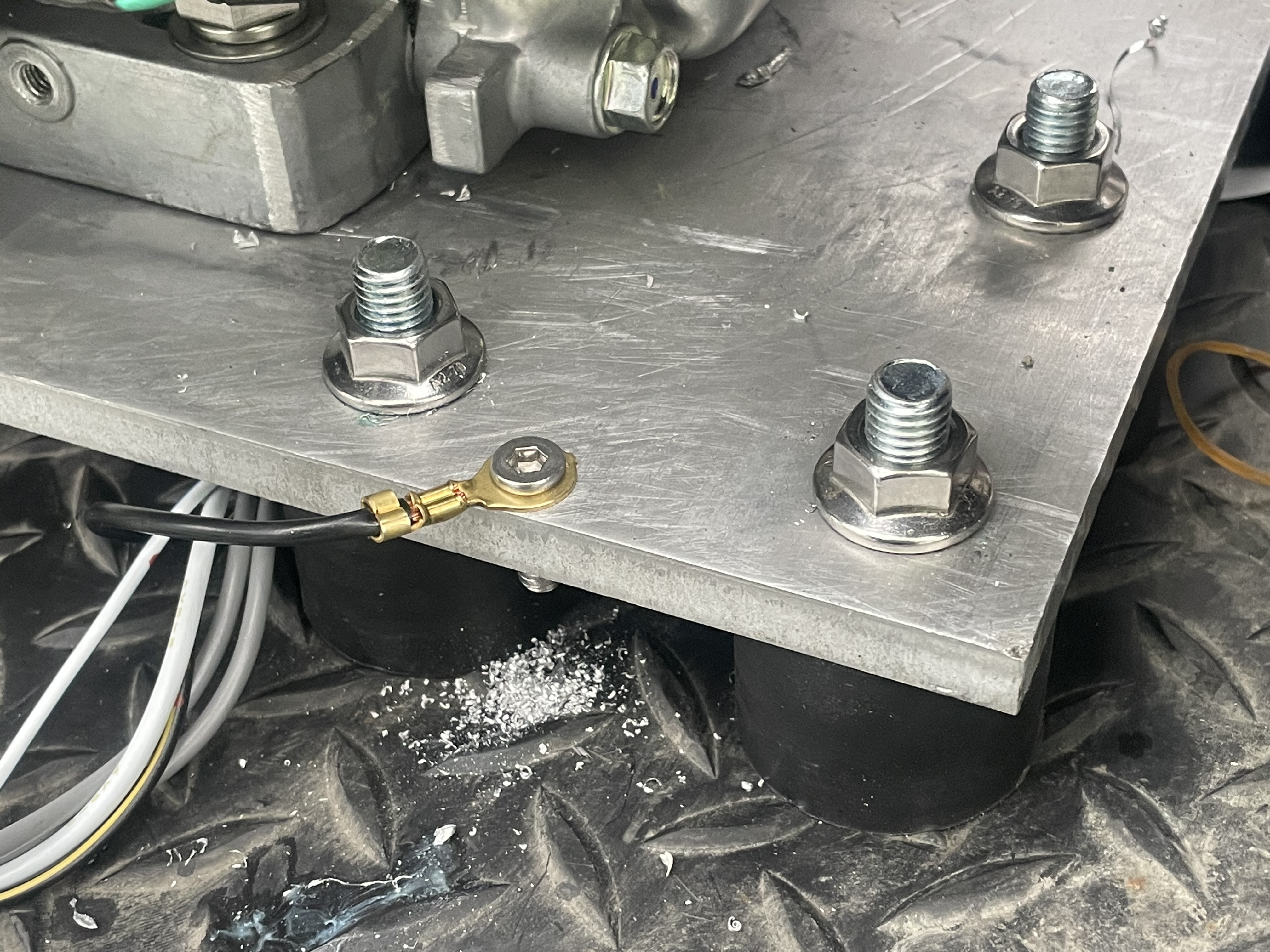 I didn’t have the right size bolt to go in the motor, so just drilled and tapped a 1/4-20 into the skid.