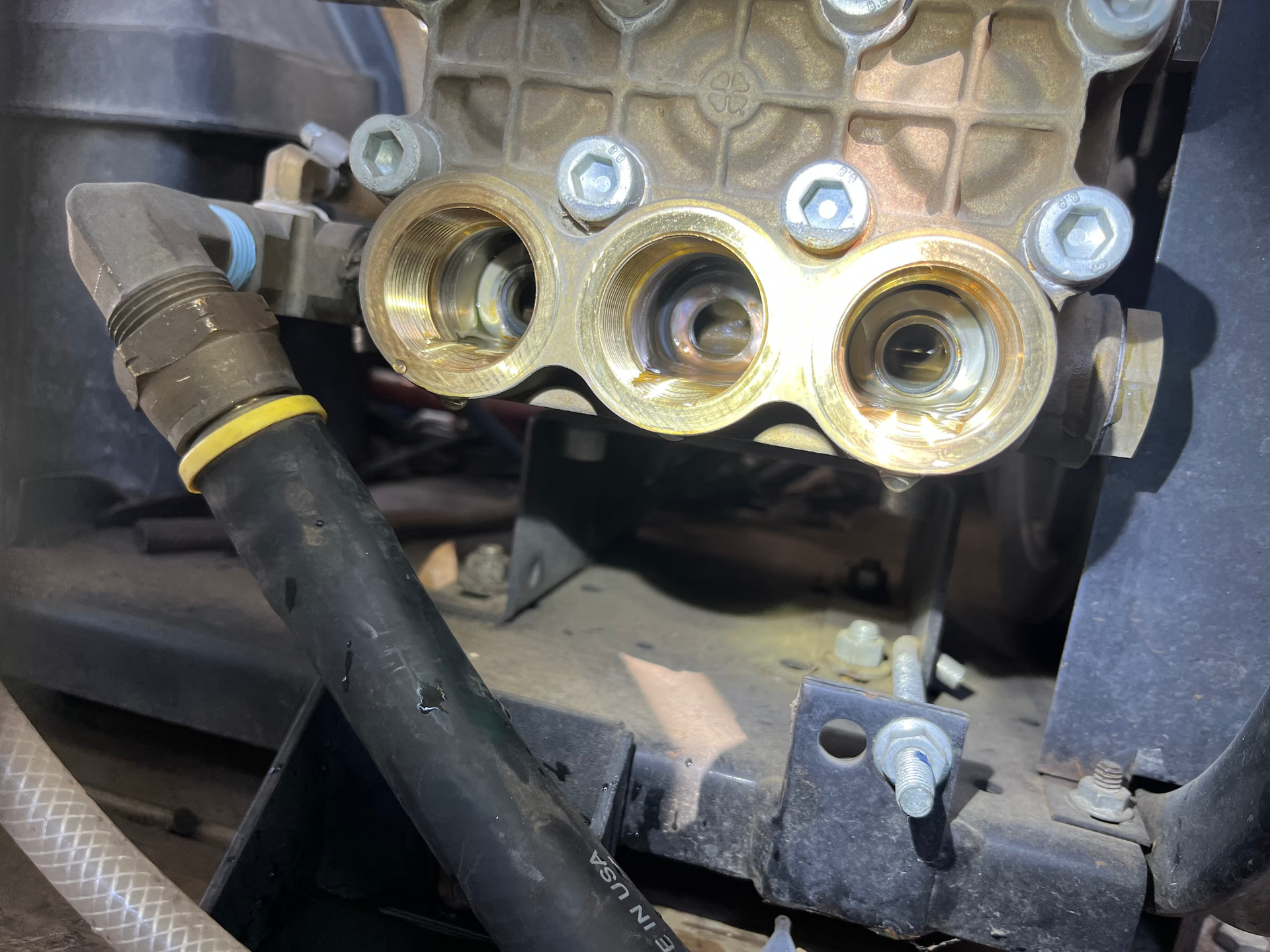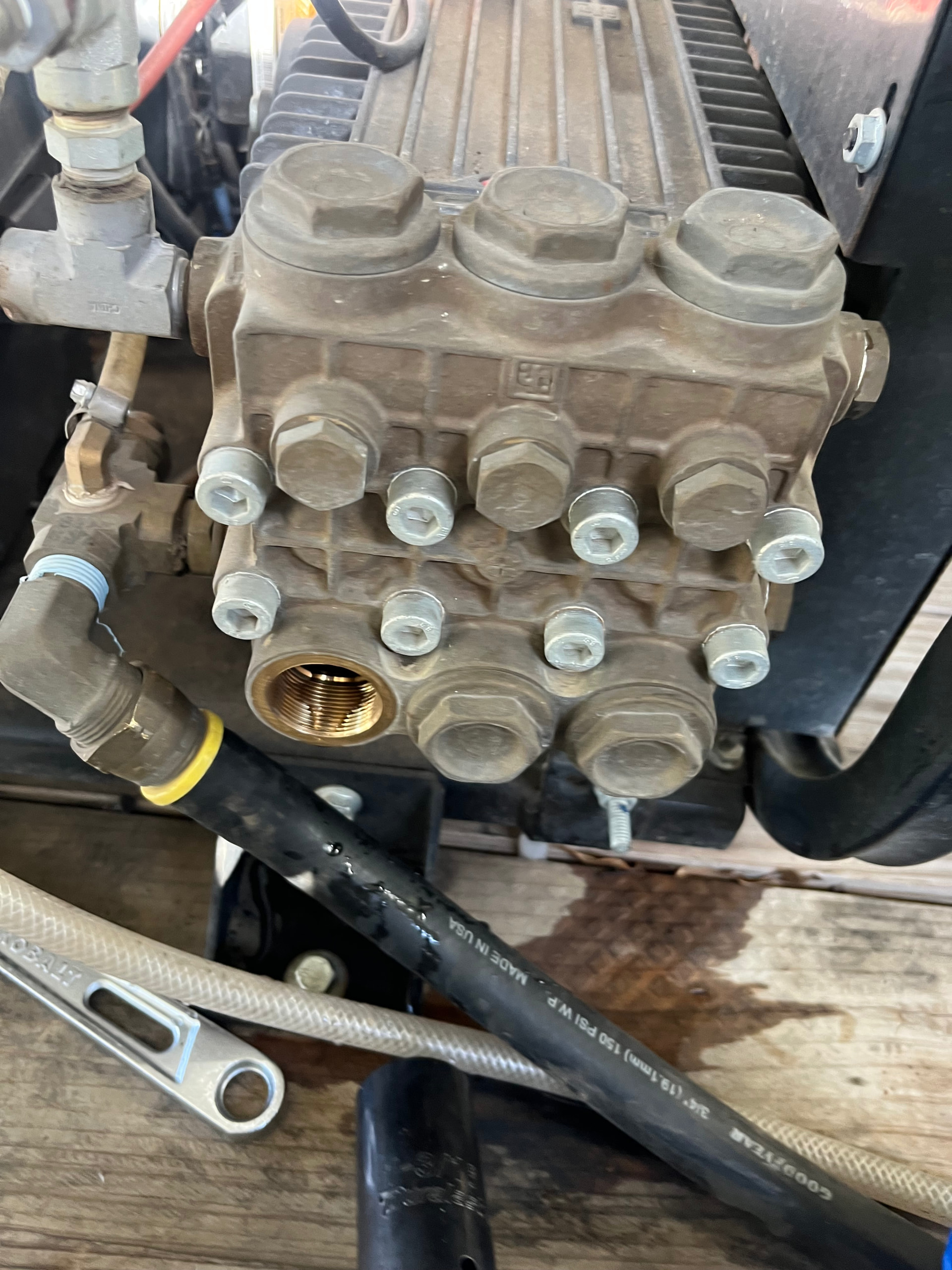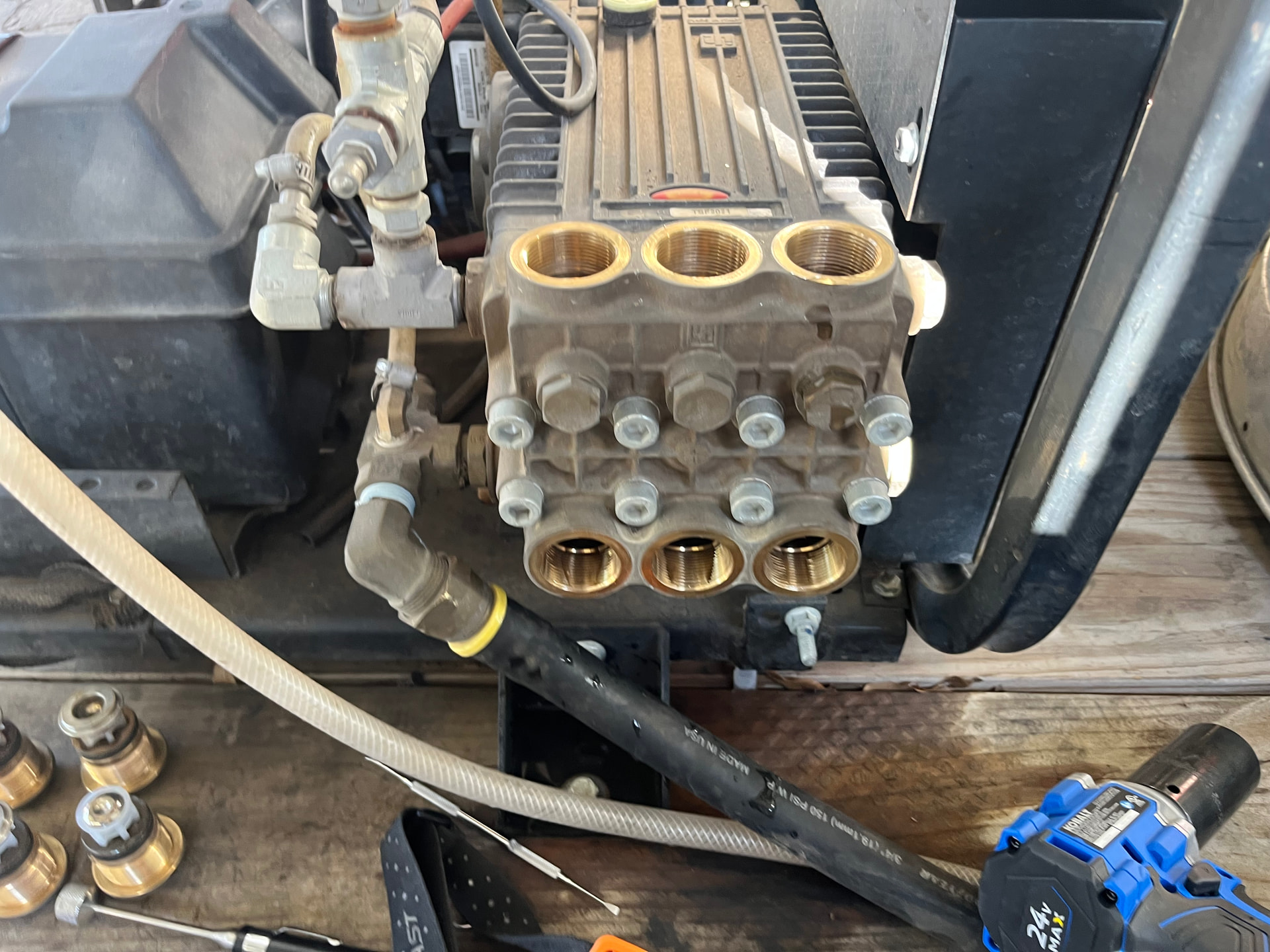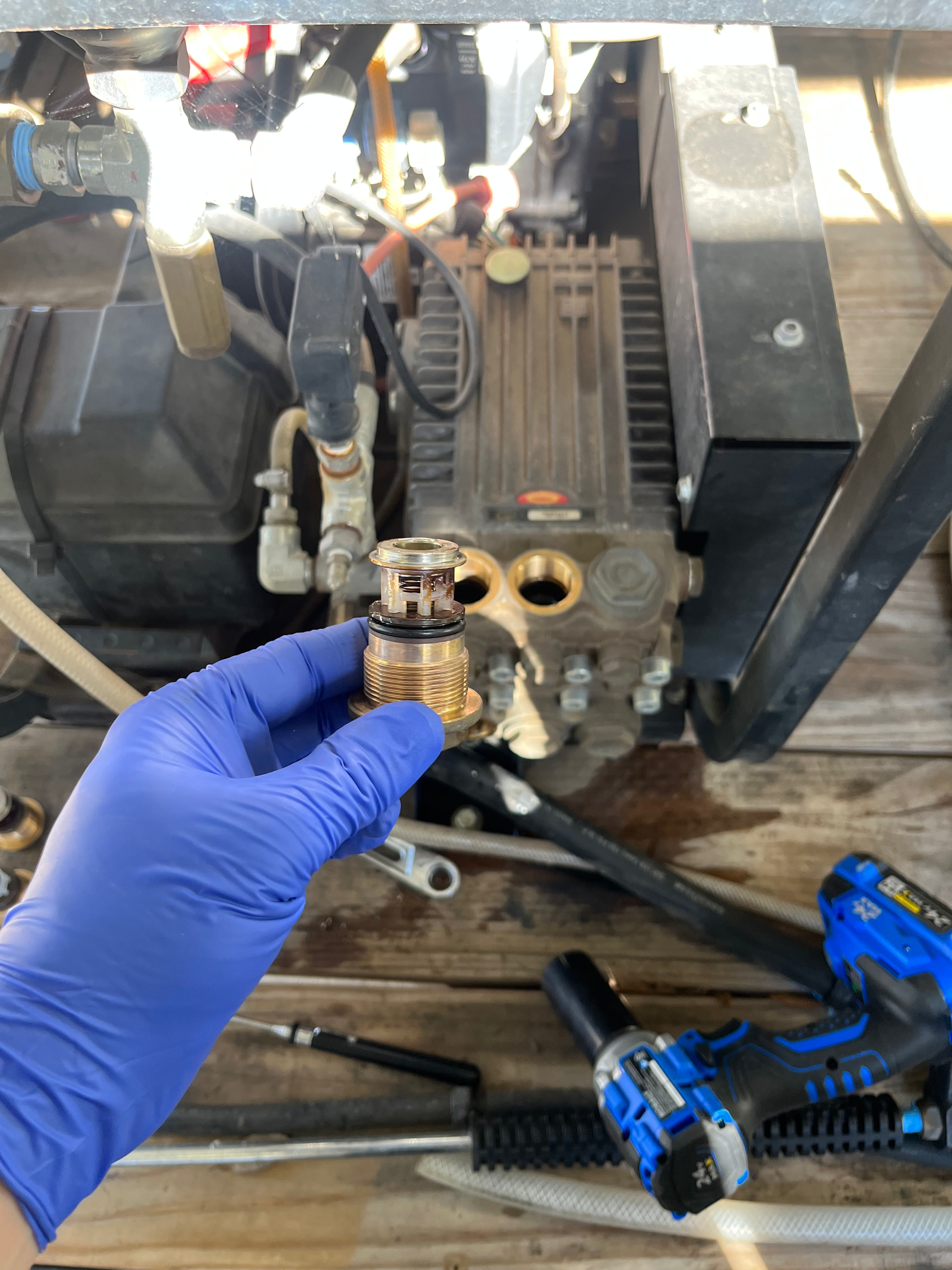 After rinsing the valves and checking they all seemed to seal i reinstalled them and ran the pump. I managed to extract the top plates on those two bottom valves and they seat normally: the only one that I’m iffy about is the 3rd top valve; pushing down with my finger and release would sometimes have it sit at a weird angle but I chalked it up to how I was pressing it down. Pressed straight down it would come back up normally. Still only getting around 2600psi. I checked the bypass and have zero flow into the tank when pulling the trigger. Adjusting the unloader didn’t affect the bypass flow so I’m wondering if the issue lies there. Surface cleaner runs okay enough to clean slowly if I have to. Nearby parts shop wanted $350 for a kit 169 valve replacment kit. Online its $160 with shipping.