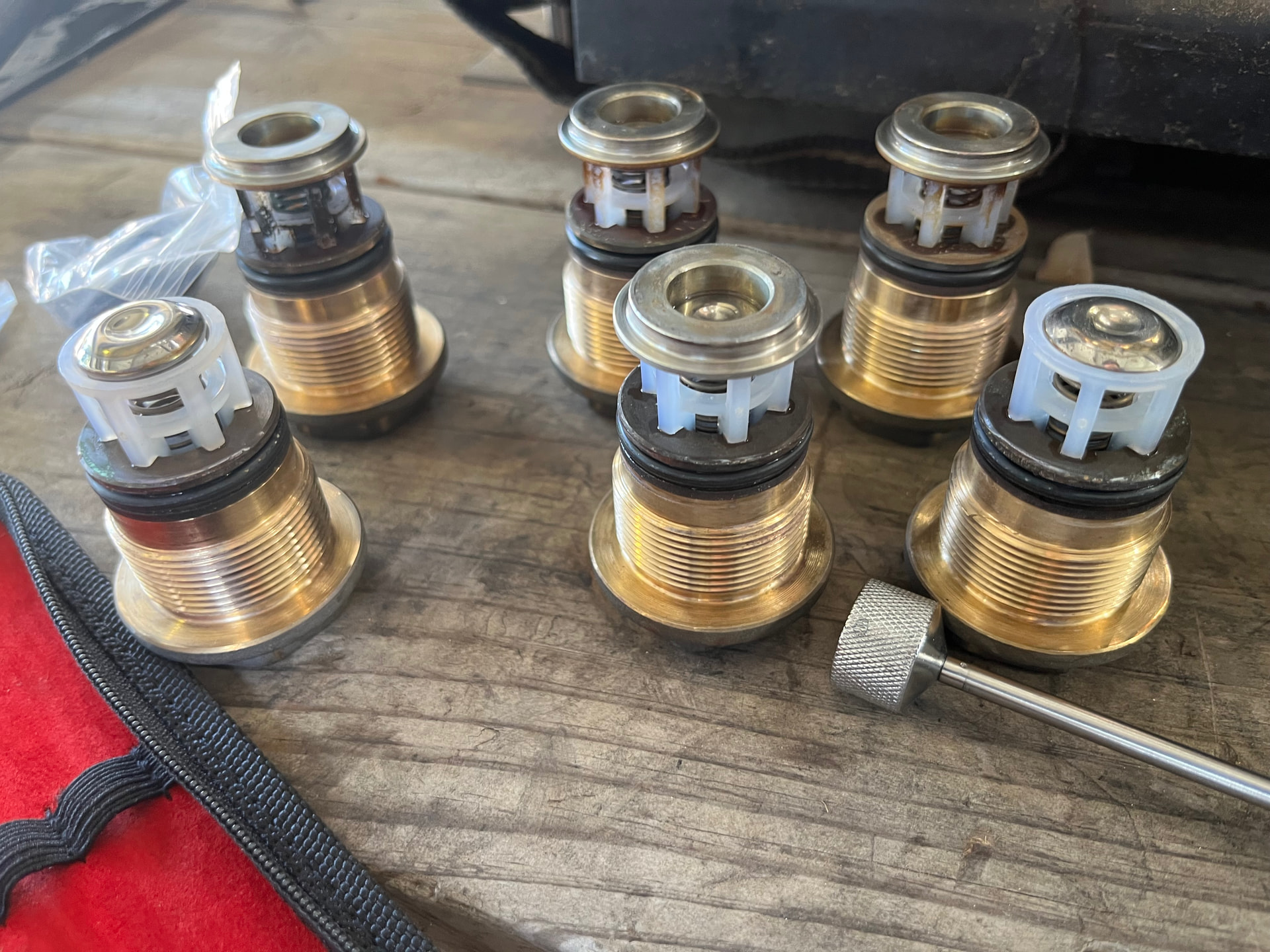 The too valves look rusted but push up and down without any resistance or grit. The bottom valves essentially unrusted but 2 pulled out without the top washer part staying on them, which I am unable to pick out. Gonna run fresh water over them and reinstall for now, in case any potential grit got on valve seals.