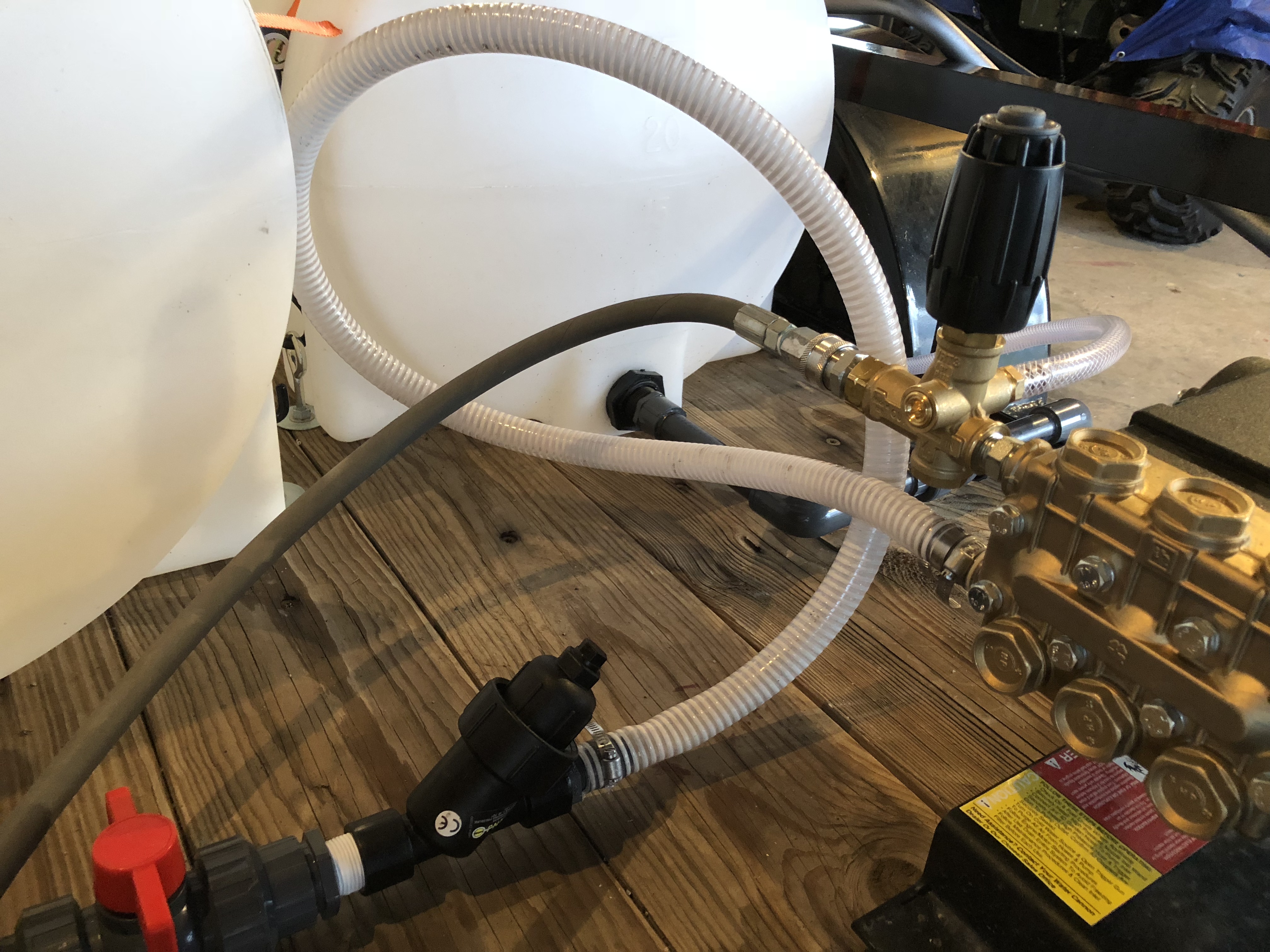 I’m going to hard pipe from the chemical tank out to the side of the trailer for filling 5 gallon buckets for mixing house wash downstream mixes. I’ll do that tomorrow or early next week.