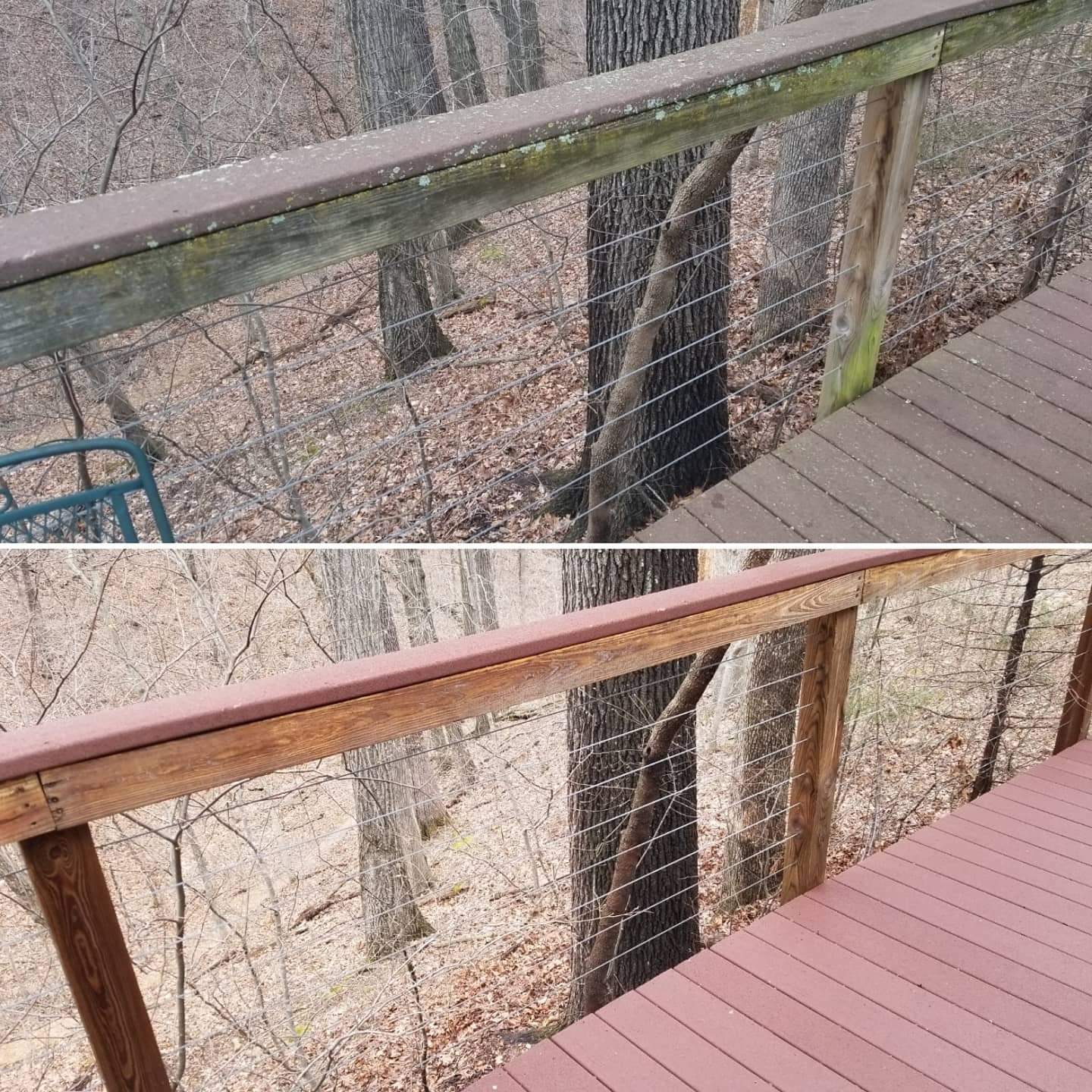 This is a close up of the handrail, and a wide view of the deck. I’d say this deck has some age on it. Thanks Racer for the reply.