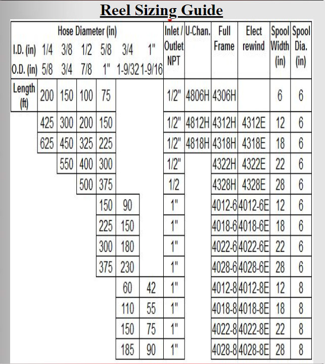 If you’re building a trailer go with all 18’s. Truck build you can go smaller except for the water, but you’re going to be limited on amount of hose. See the chart below and where it shows #of feet per size of hose for a certain width, that’s rolling it up absolutely perfect. Realistically deduct about 50 ft from all of those.