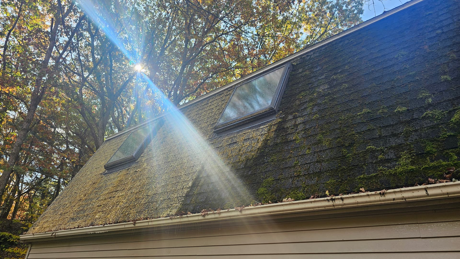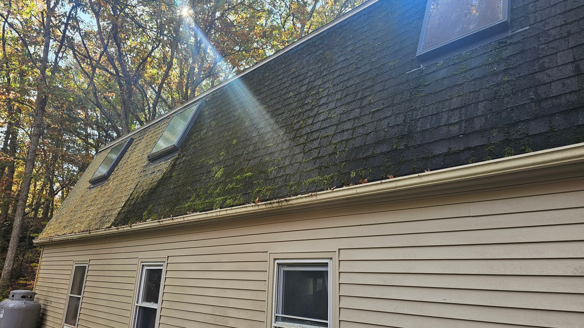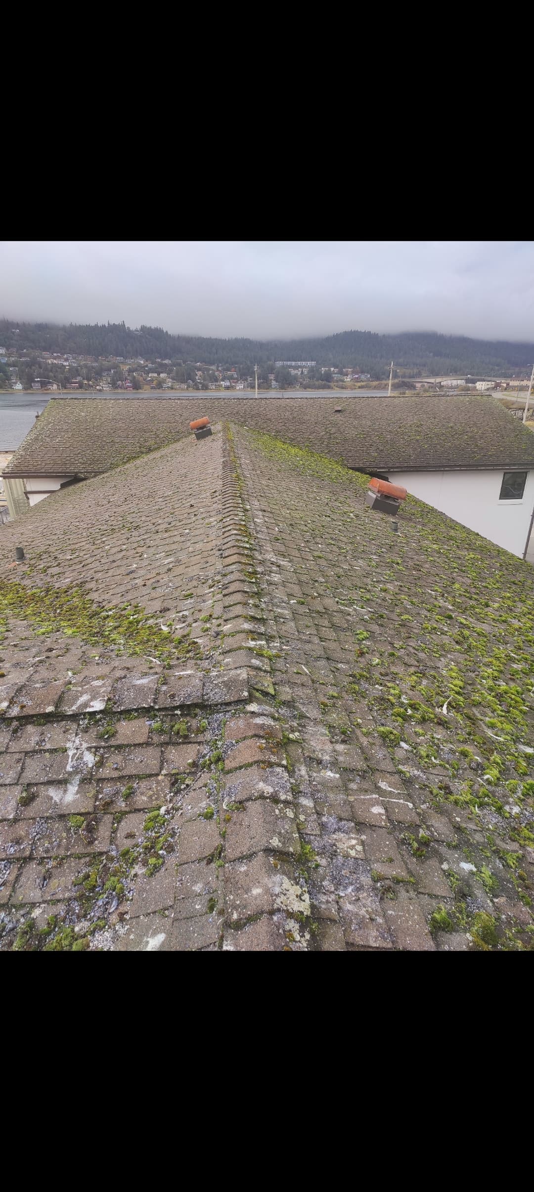 Last roof of the year And it was a doozy. Probably about 15 contractor bags of moss. Hundreds and hundreds of pounds of moss came off. Was super windy and blew through about 120 gallons of sh. Nice little chunk of change though.