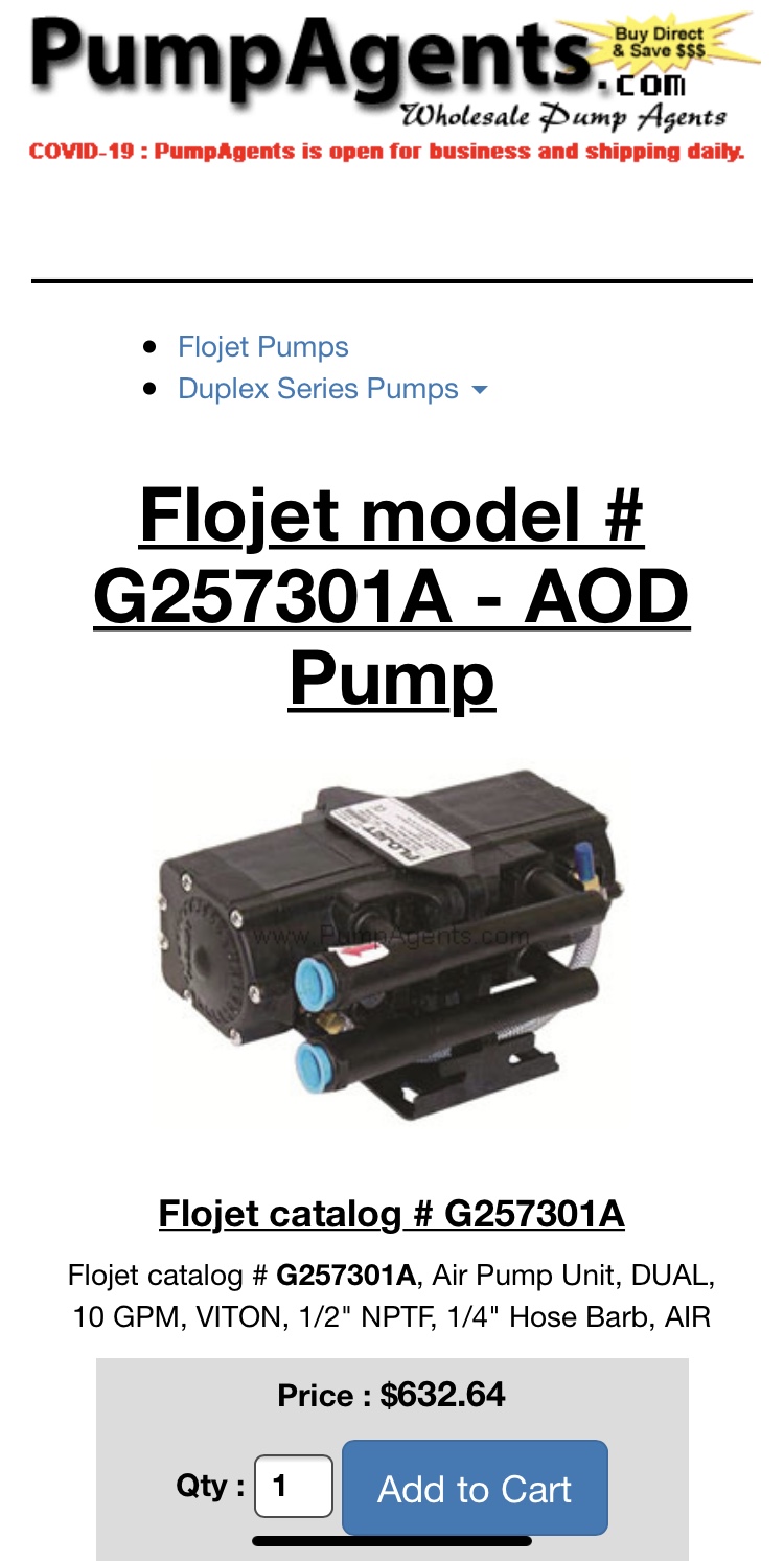 Not sure where you’re located but Kleen-rite has good prices on certain things. $234 10GPM FloJet Pump